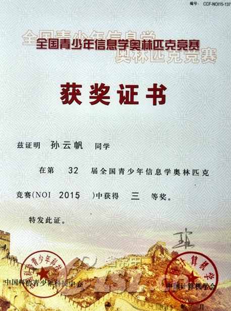 本次比赛依然由全国信息学金牌教练曹文老师领衔参赛,在去年的NOI30周年纪念活动中,他荣获了指导教师钻石奖,全国仅有11人获此殊荣,同时,他还获得了杰出社会服务奖。本届赛事所有荣获金牌的常州选手均出自曹文老师门下,众多获奖选手早期均是从常州市少年宫程序设计培训班开始接受信息奥赛的启蒙教育,曹文名师工作室和常州市少年宫也成为了享誉全国的“信息奥赛冠军摇篮”。