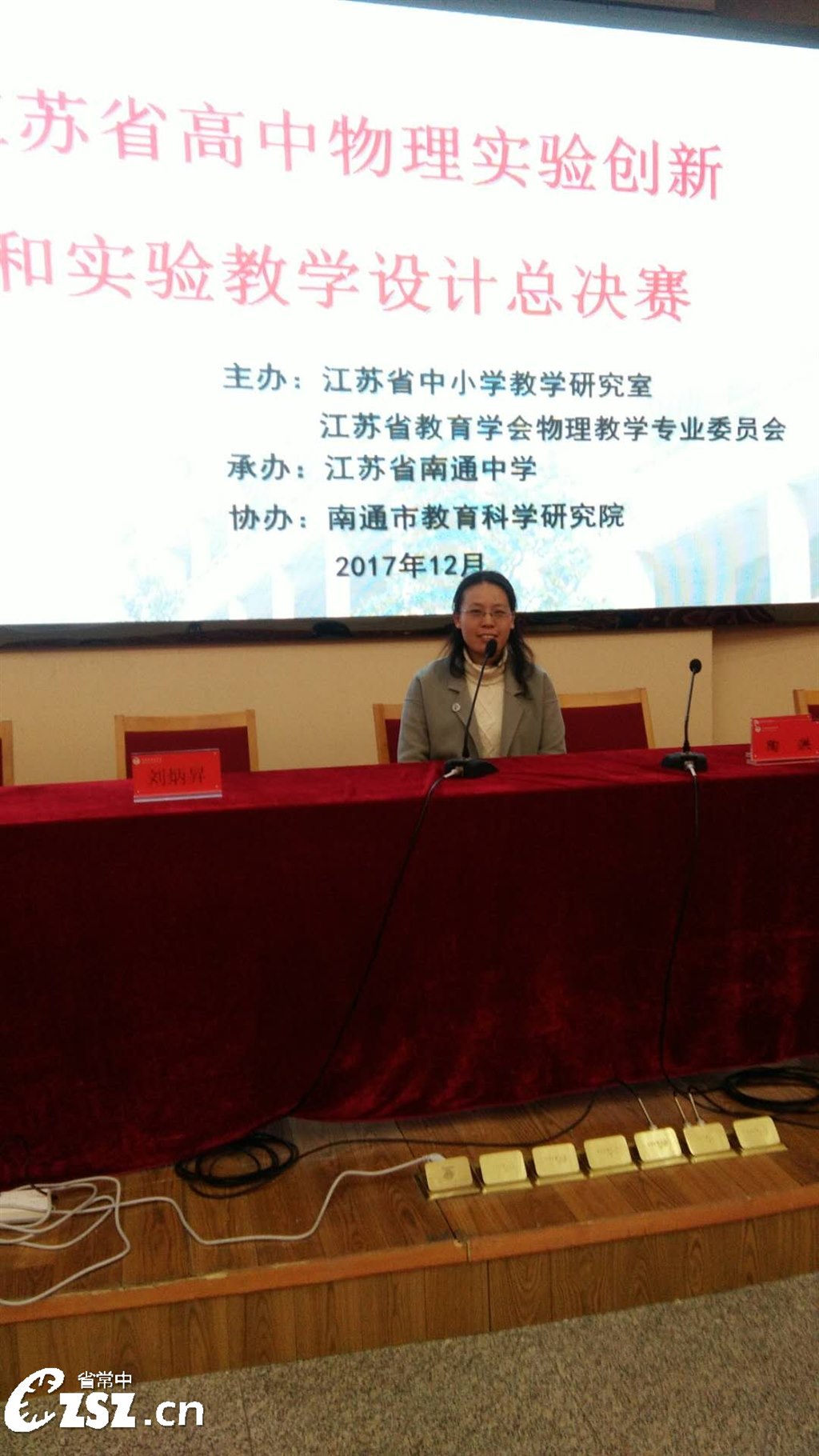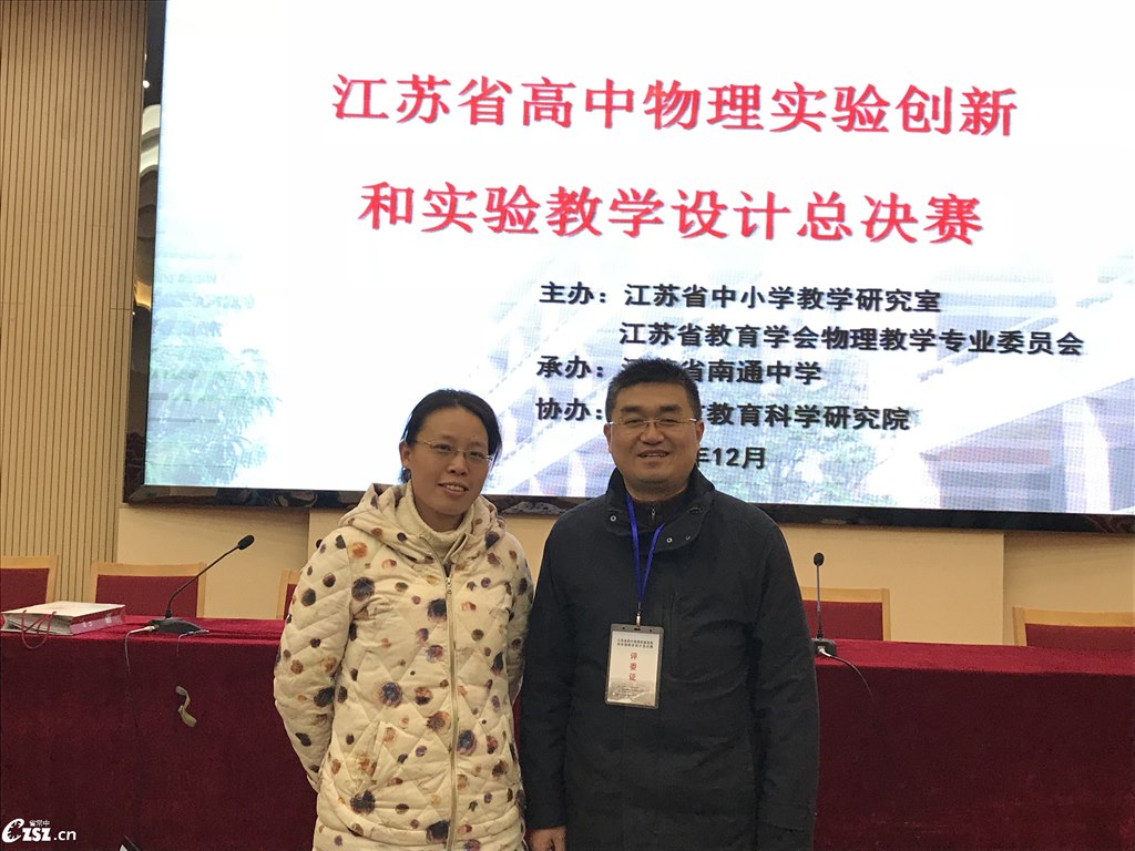 为促进全省高中物理教师实验制作、实验创新与实验教学能力的全面提升,江苏省中小学教学研究室和江苏省教育学会物理教学专业委员会于12月18~20日举办了高中物理实验创新和实验教学设计总决赛。在汪校长的关心帮助和刘霁华老师的精心指导下,经层层选拔,我校胡甜老师代表常州市并作为大赛中唯一的一位双料选手,和杨晓艳老师一起赶赴南通参加实验教学设计说课比赛和实验教具比赛,凭着出色的逻辑思维和过硬的物理素养,荣膺实验设计说课一等奖的第一名,同时还喜获实验教具二等奖。