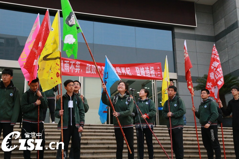 “坚韧行”是省常中高二年级的传统活动,一般会在每学年的第一学期中旬举行。而这一次,因为天气和其他客观因素的影响,活动被延期至第二学期中旬举行。时间虽然发生了变化,天气也不似第一学期那般寒冷,但高二年级的师生们依然以最饱满、充分的热情与活力迎接这次活动,且看同学们的出征仪式——