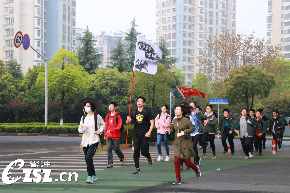 中午12:30,同学们再次集合、整队,踏上了回校的征程。相比于上午,虽是相同的路线,但途中的感受似乎逐渐变得艰难起来;经过了一个上午的消耗,下午的脚步似乎慢慢变得沉重起来。只是,这并不会难倒省常中的师生们,大家或引吭高歌,或相互鼓励、搀扶,整个队伍始终以一个完整的队形向前移动着。