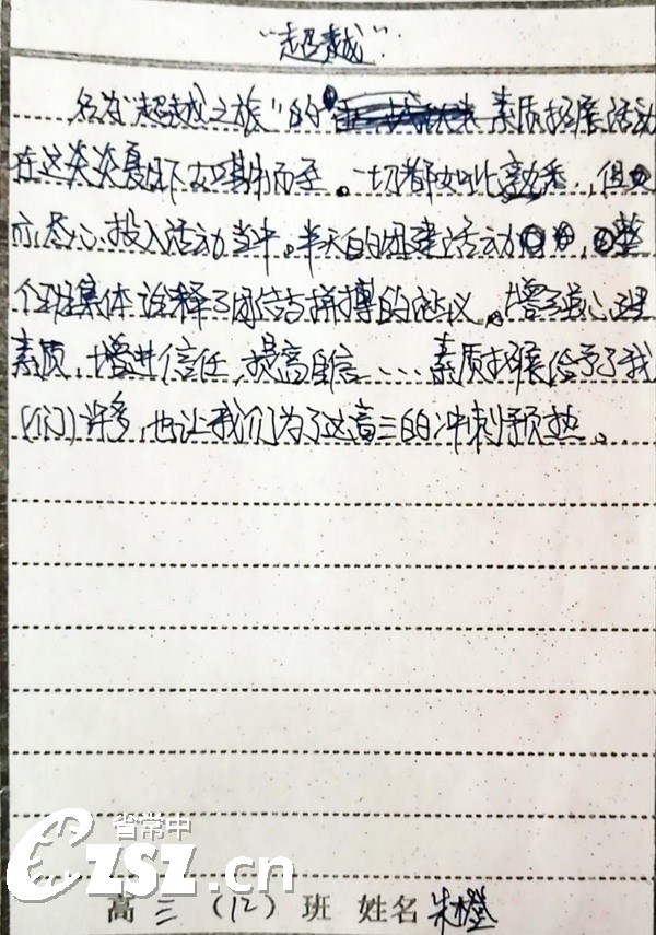 高三(12)班拓展第一天上午感悟 马霖杰、沈海洋、王子蕴、殷任政、邹文豪、朱橙、沈洋、谢一心、杨澍等