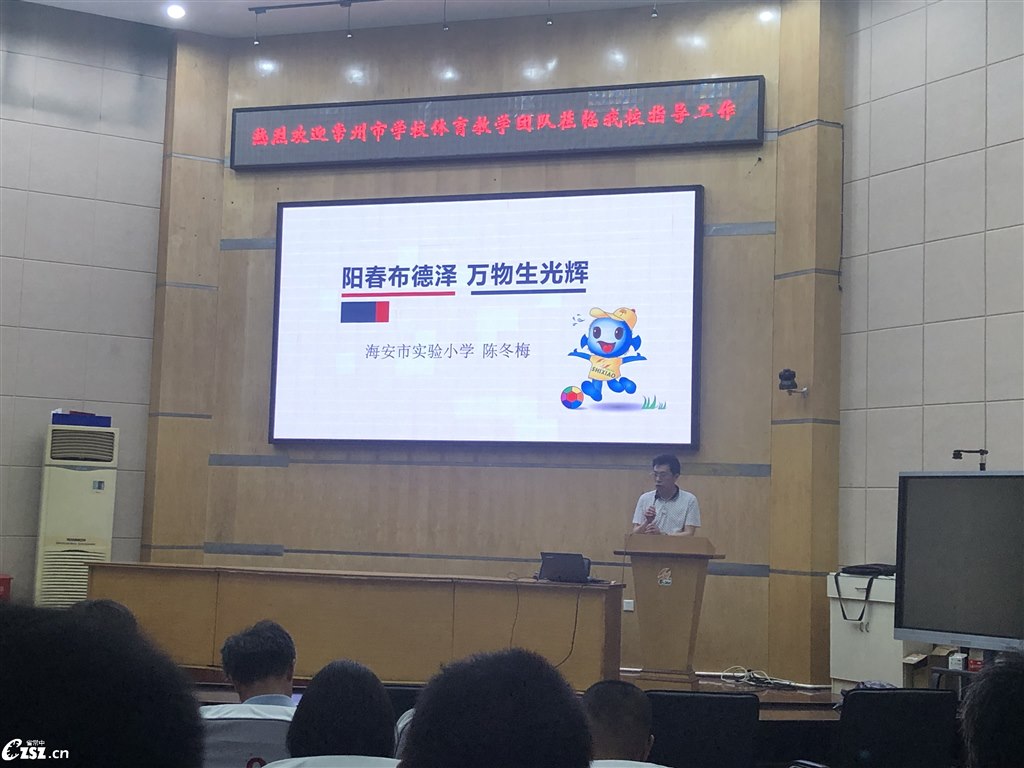 现场教学:在甘亦农处长的带领下,常州体育教师团队来到南通市海安市实验小学和崇川学校参观。海安市实验小学有着112年历史的学校,学校体育文化底蕴浓厚,体育竞赛成绩突出,是三门球的创始学校,并且通过学校体育教师团队自主研发了手足球。学校以手足球校本课程为主,培养篮球,足球,田径等项目的运动员,经过兴趣引导,筛选训练,在南通市中小学篮球比赛蝉联冠军,日常教学,课课练,体育艺术节,班级联赛各方面都是井然有序。崇川学校是2011年开办的九年一贯制新学校,该学校以“向上向善”的校训为核心,秉承“让每一朵花儿美丽绽放”的办学理念,塑造“大爱大智大美”的教师群体形象,培养“乐学乐思乐行”的新时代好学生。进入该学校,体育文化宣传随处可见,体育课程多元化,让我感受到强烈的体育文化气息,并且还在体育文化创新的道路上努力。