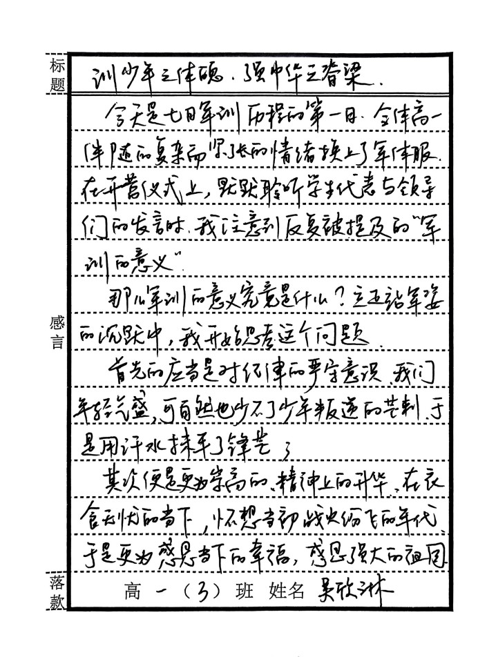 9月21日高一(3)班第一天感言(二)