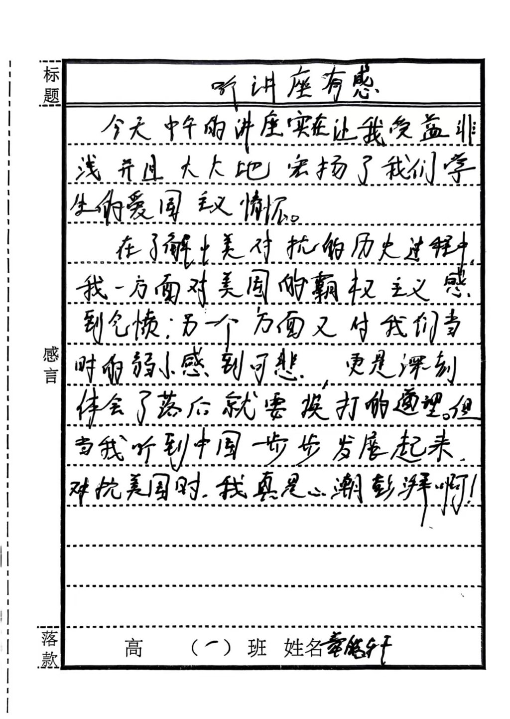 9月22日高一(1)班营员感怀(一)
